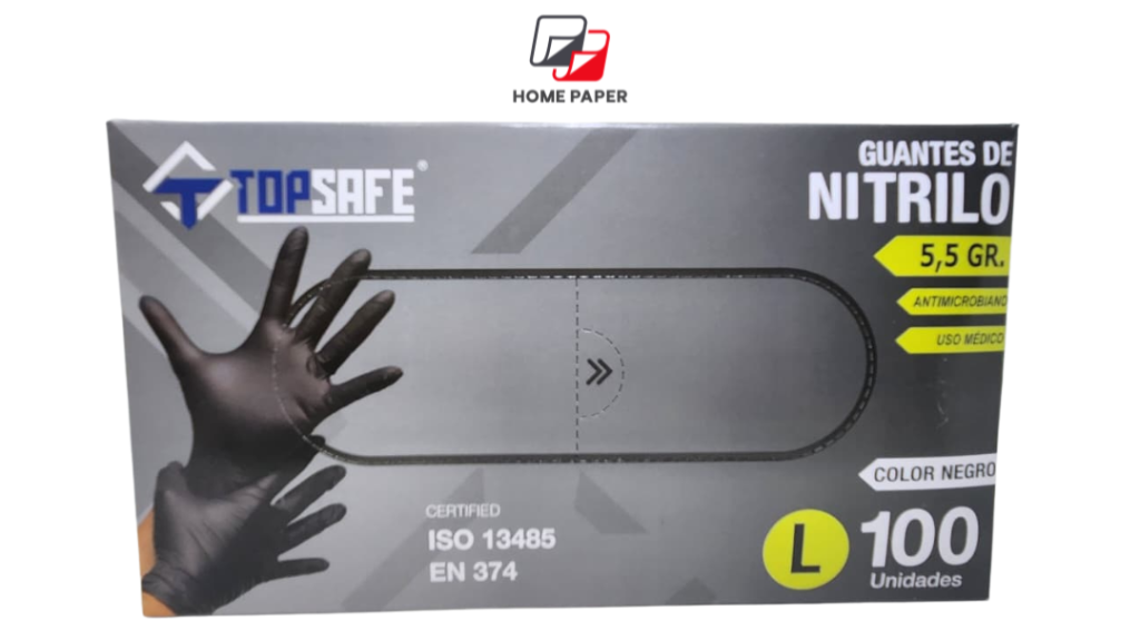 Guante de Nitrilo 5,5 gr Topsafe de examinación color negro, formula suave y delgada otorga mejor tacto y sensitividad a palma y dedo.